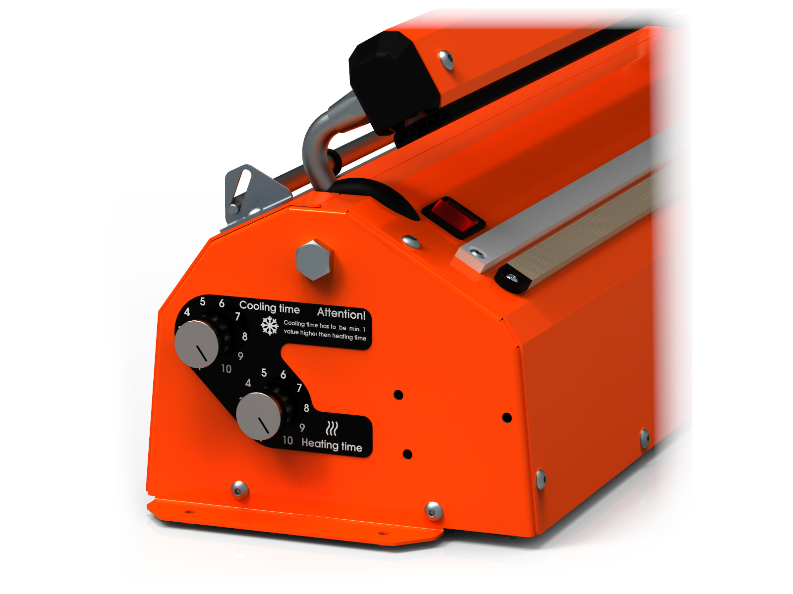Der Schweißdraht der Folienschweißmaschine – Folienschweißgerät erwärmt sich nur, wenn die Schweißbalken geschlossen sind. Die Versiegelung wird aktiviert, wenn der Schweißbalken vollständig geschlossen ist. Der Bediener muss den Schweißbalken manuell oder mit einem mechanischen Fußpedal schließen, bis der Elektromagnet einschaltet und den Schweißbalken während der Siegel- und Kühlzyklen unten hält. Die Schweiss- und Kühlzeit ist elektrisch gesteuert und unabhängig voneinander einstellbar. Die Schweißung wird erst gestartet, wenn die Schweißbalken vollständig geschlossen ist und öffnet, wenn der Schweißdraht abgekühlt ist. KEINE Verbrennungsgefahr.