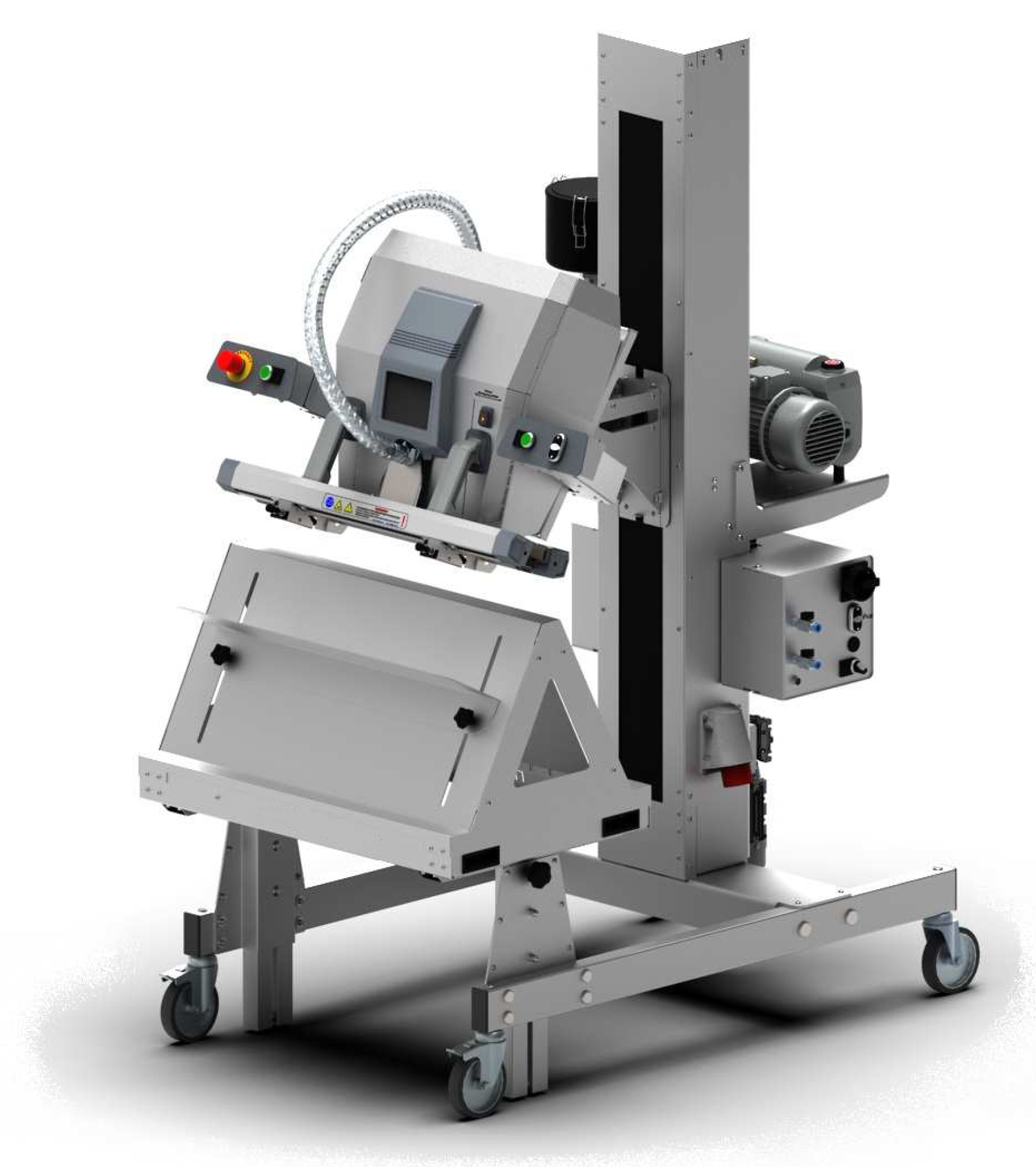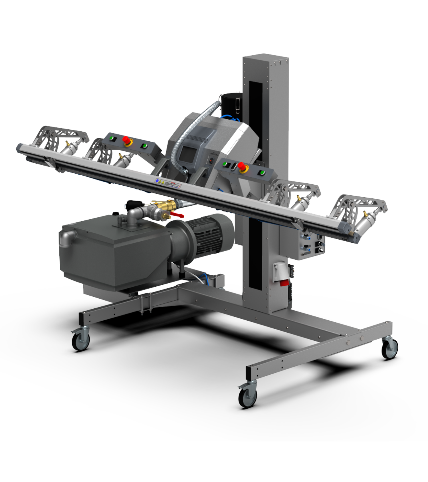 Die Maschine wurde entwickelt, um Luft aus großen Beuteln zu saugen. Mit der unterschiedlichen Art und Größe externer Vakuumpumpen ist es möglich, bis zu 300 m3 / h Luft zu saugen (max. 850 mbar Vakuumwert) aus dem Beutel (ACHTUNG: Je nach angeschlossener Vakuumpumpenart und -größe!). Um die Maschine zu betreiben, muss eine externe Vakuumpumpe angeschlossen oder die Maschine an ein vorhandenes Vakuumsystem angeschlossen werden.