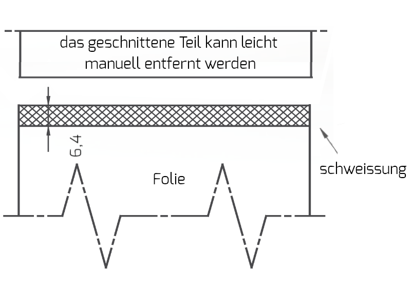 Es kann für PE-Folien verwendet werden. Für alle anderen Folientypen wird eine Musterschweissung empfohlen. Aluminium-Verbundfolien können nicht geschnitten werden.